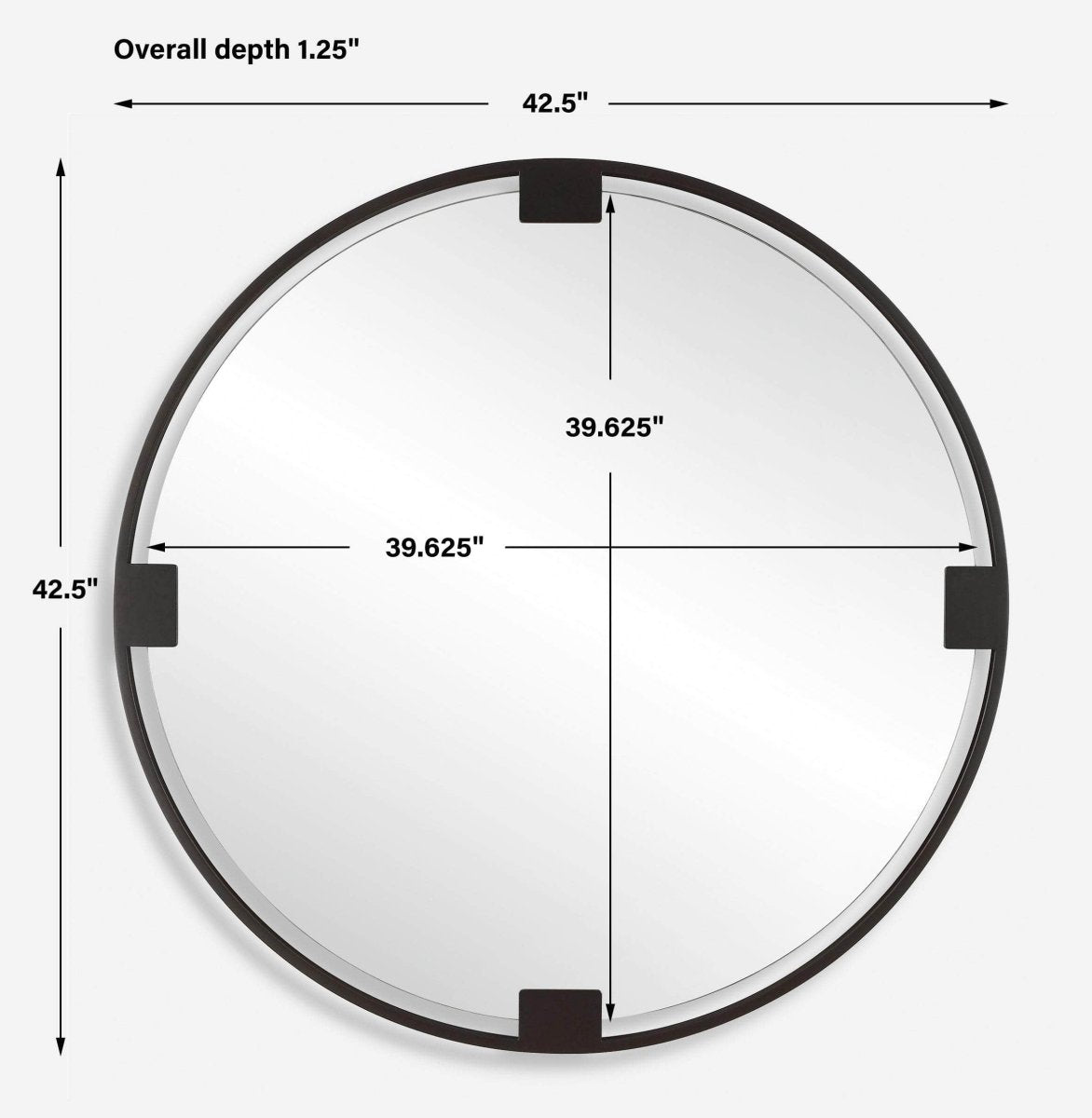 This Round Mirror Is Crafted With A Hefty Dark Bronze Iron Frame, Adorned With Matching Bands That Suspend A Polished Edge Mirror For A Look That Exudes A Timeless Charm That Complements Any Decor Style.